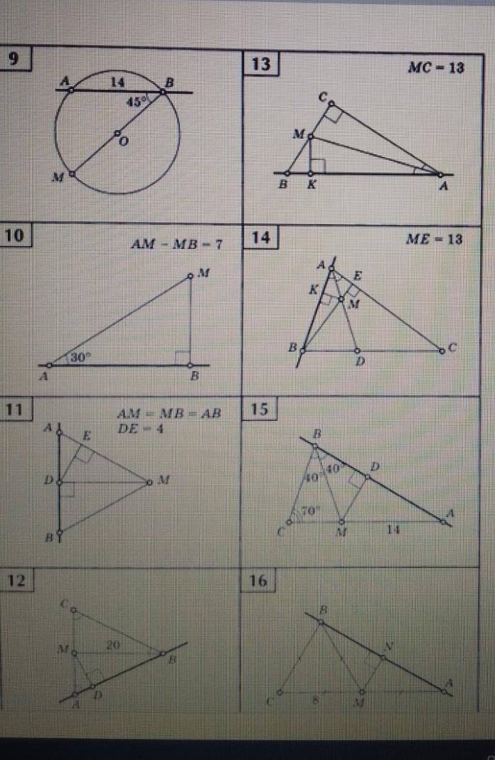 МАВ - равнобедренный прямоугольный треугольник ⇒ МА = 14 искомое расстояние