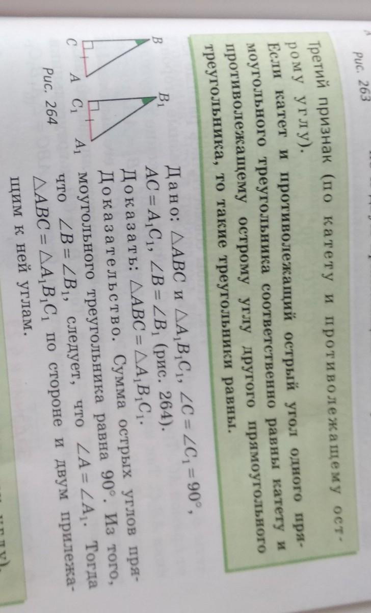 сформулируйте и докажите утверждение о признаке равенства прямоугольный треугольников по катету и противолежащему углу