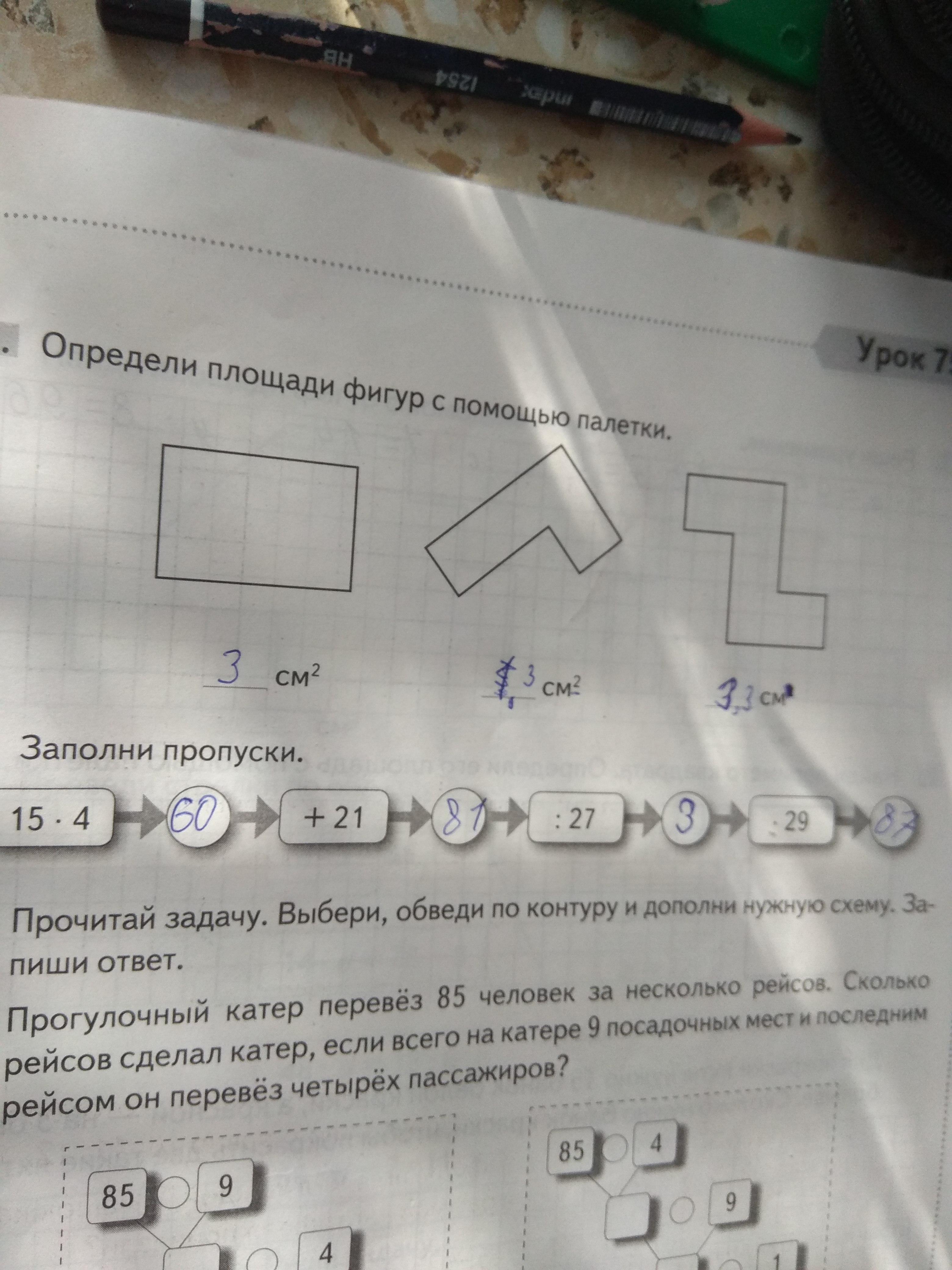 85 - 4 = 81 (выяснили сколько человек перевёз катер без 4 пассажиров).