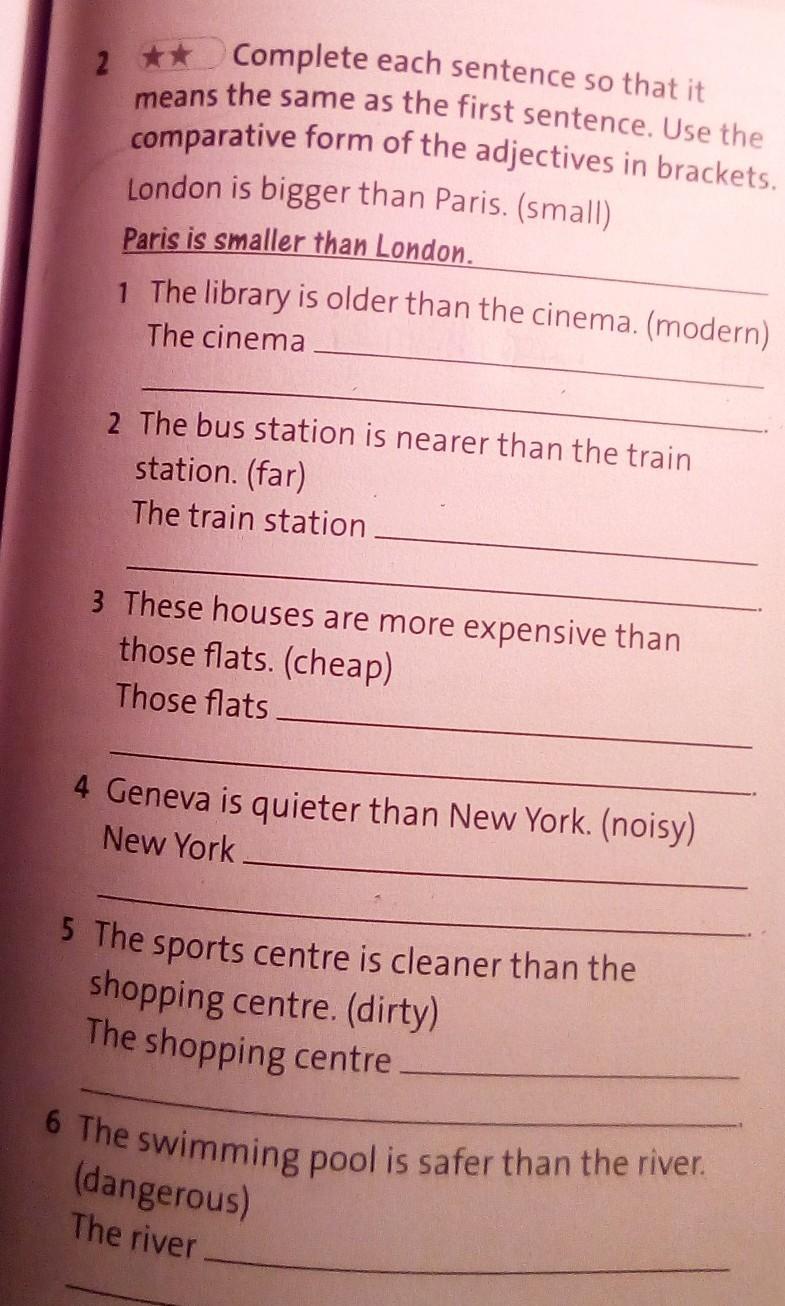 Complete each sentence so that it means the same as the first sentence. use the comparative forn of the adjectives in brackets.