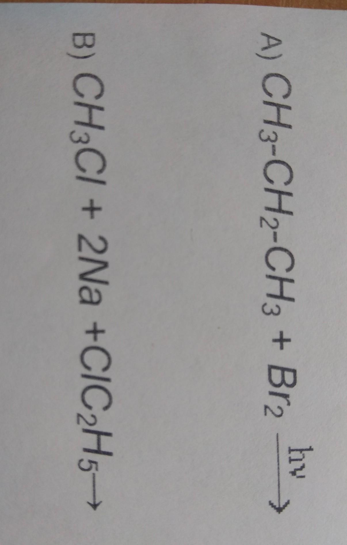 1) CH3—CH2—CH3 + Br2 (hv)= CH3—CH2Br—CH3 + HBr