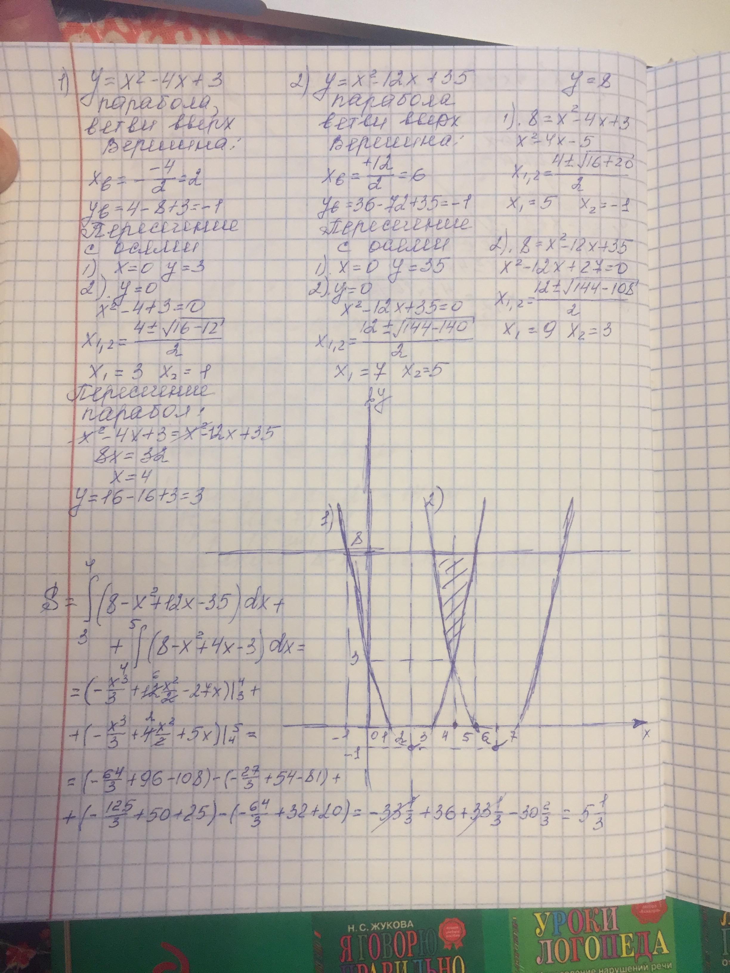 y = x^2 - 4x + 3; y = x^2 - 12x + 35; y = 8