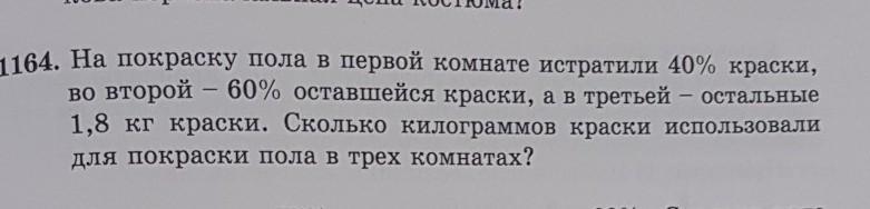 2) Вычислим, какой процент приходится на краску, использованную на пол во второй комнате: 60 : 100 • 60 = 36%;
