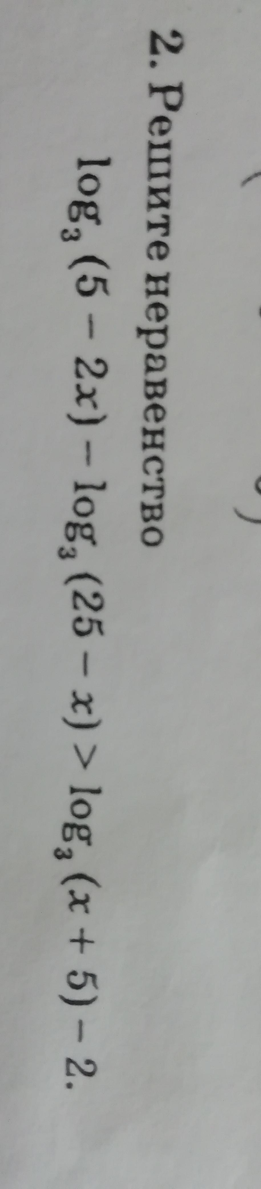 log₃(5 - 2x) + 2> log₃(25 - x) + log₃(x + 5);