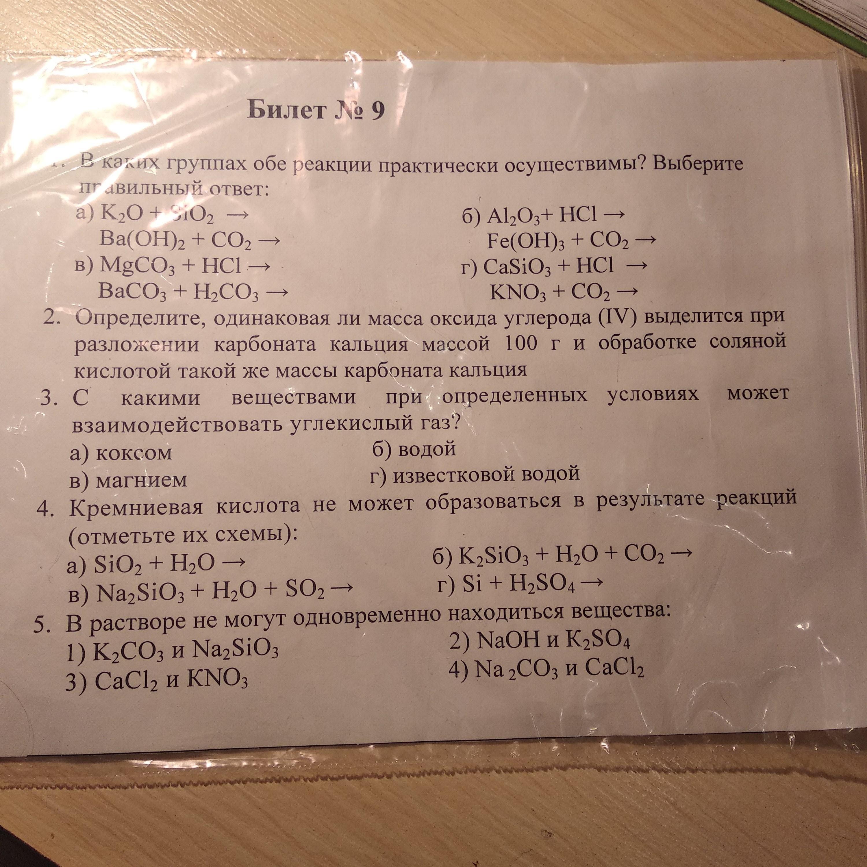 В каких группах обе реакции практически осуществимы? выберите правильный ответ: