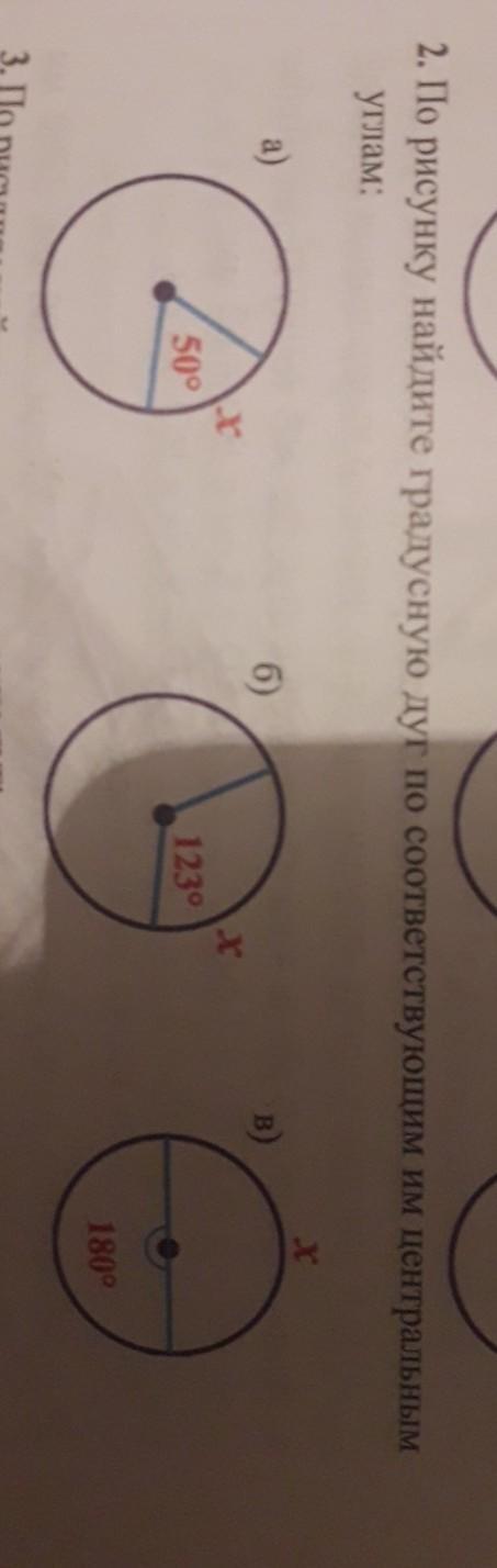 2. По рисункам найдите градусную меру дуг по соответствующим им центральным углам :
