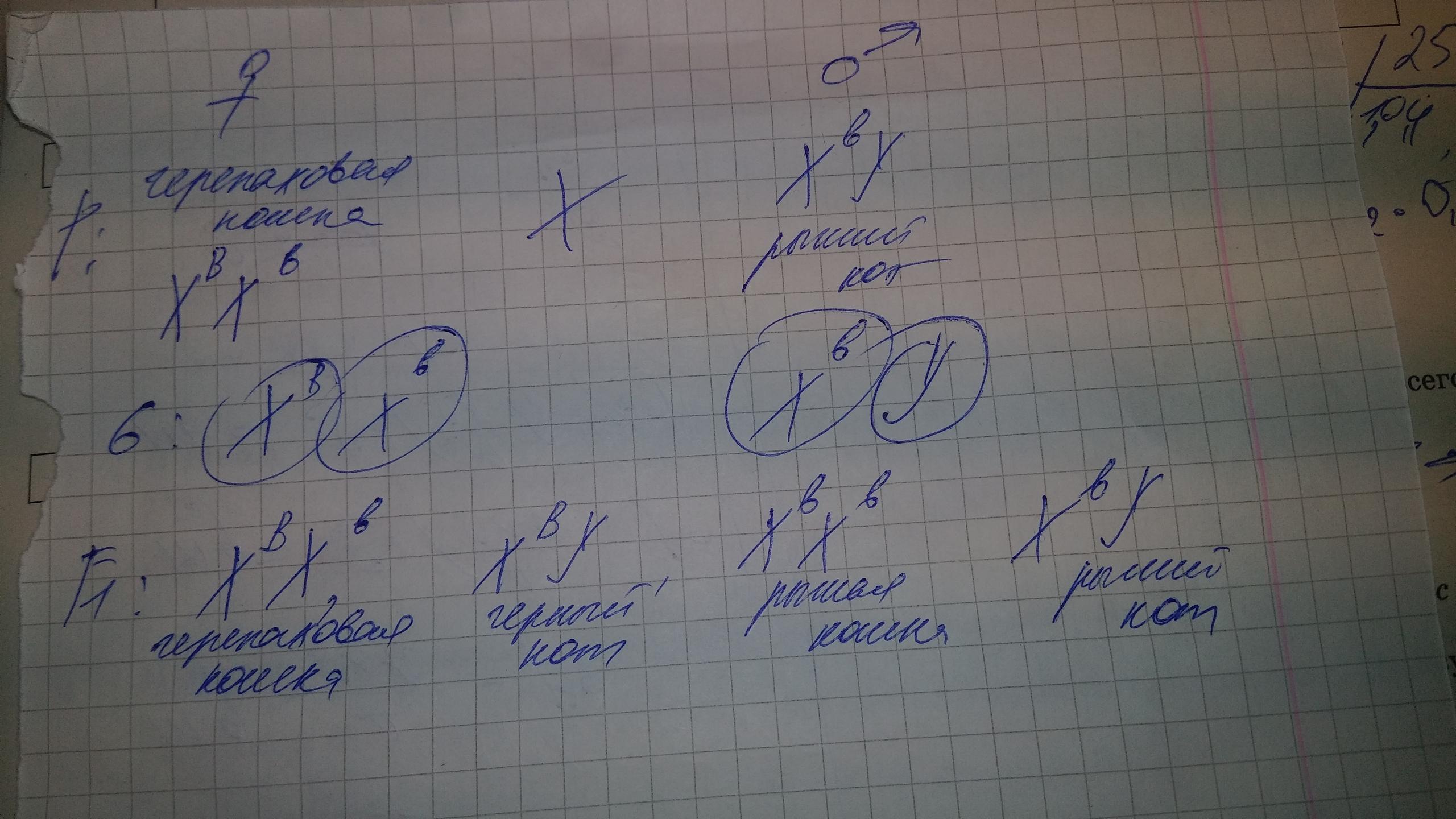 У черепаховой кошки родились котята ,чёрный рыжий и черепаховый. Укажите генотип котят