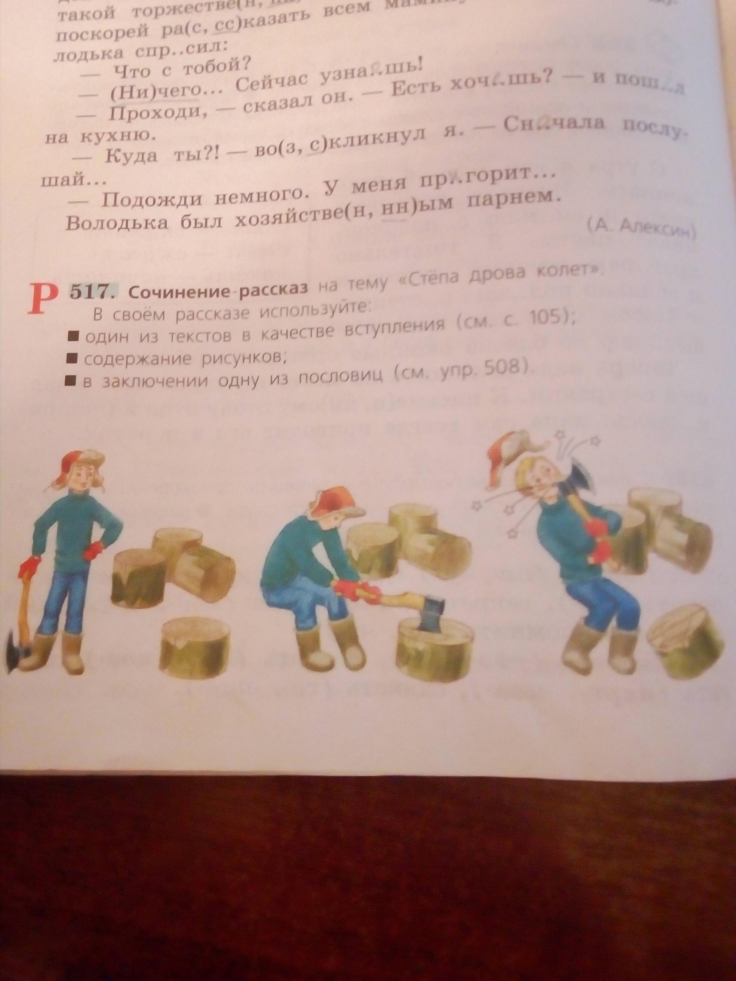 2. Однажды Ваня захотел помочь дедушке и наколоть дрова. Он взял из сарая топор и пошел к дереву лежащему в огороде. Взрослых рядом не было. Вася замахнулся и ударил со всей силы по пеньку. Он не разрубался. Ваня решил его добить и ударить еще сильней, но размахнувшись ударил самого себя.