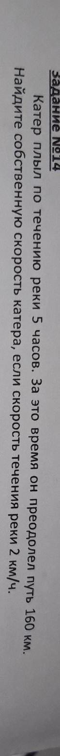 1) 160:5=32 (км/ч)- скорость катера и реки (т. к. он плыл по течению).