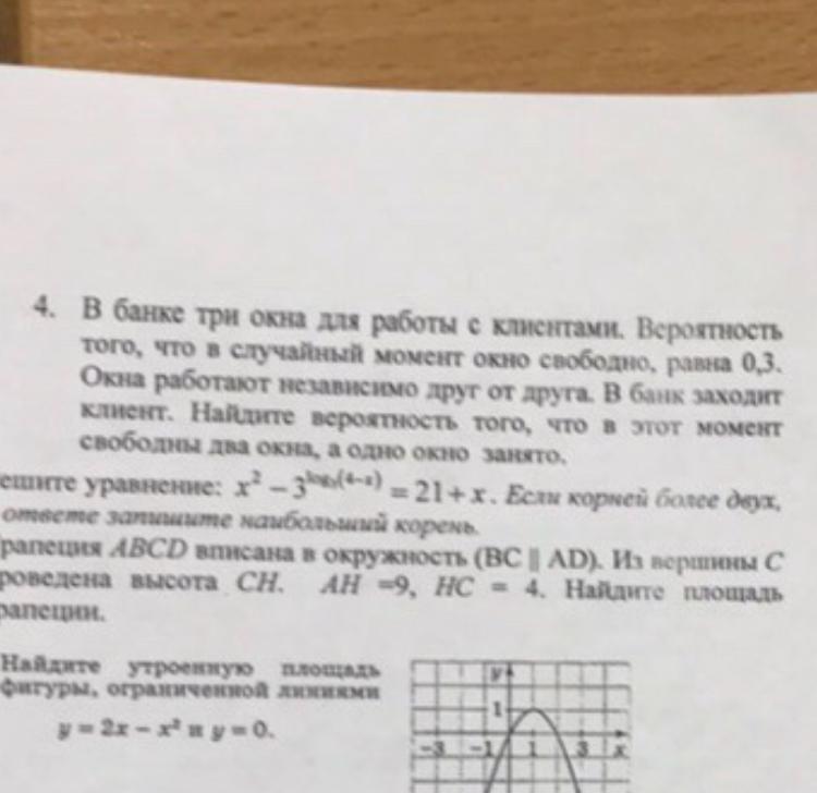 что 2 окна свободны, а третье занято = 0,3*0,3*0,7 = 0,063