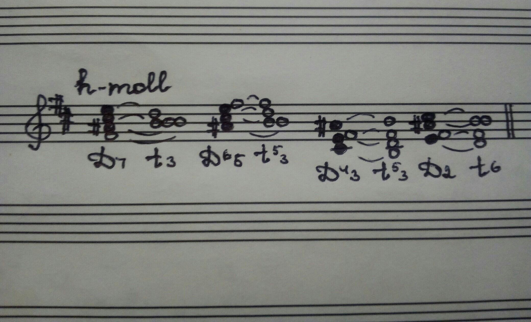 D7 (ноты снизу вверх, здесь и далее) фа ля до ми, первое обращение - ля до ми фа, второе - до ми фа ля, третье - ми фа ля до.