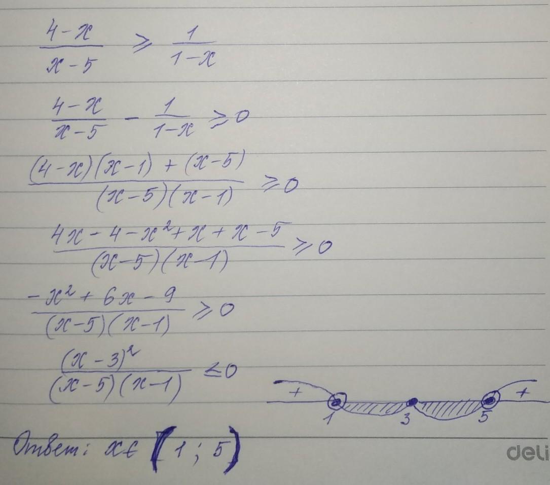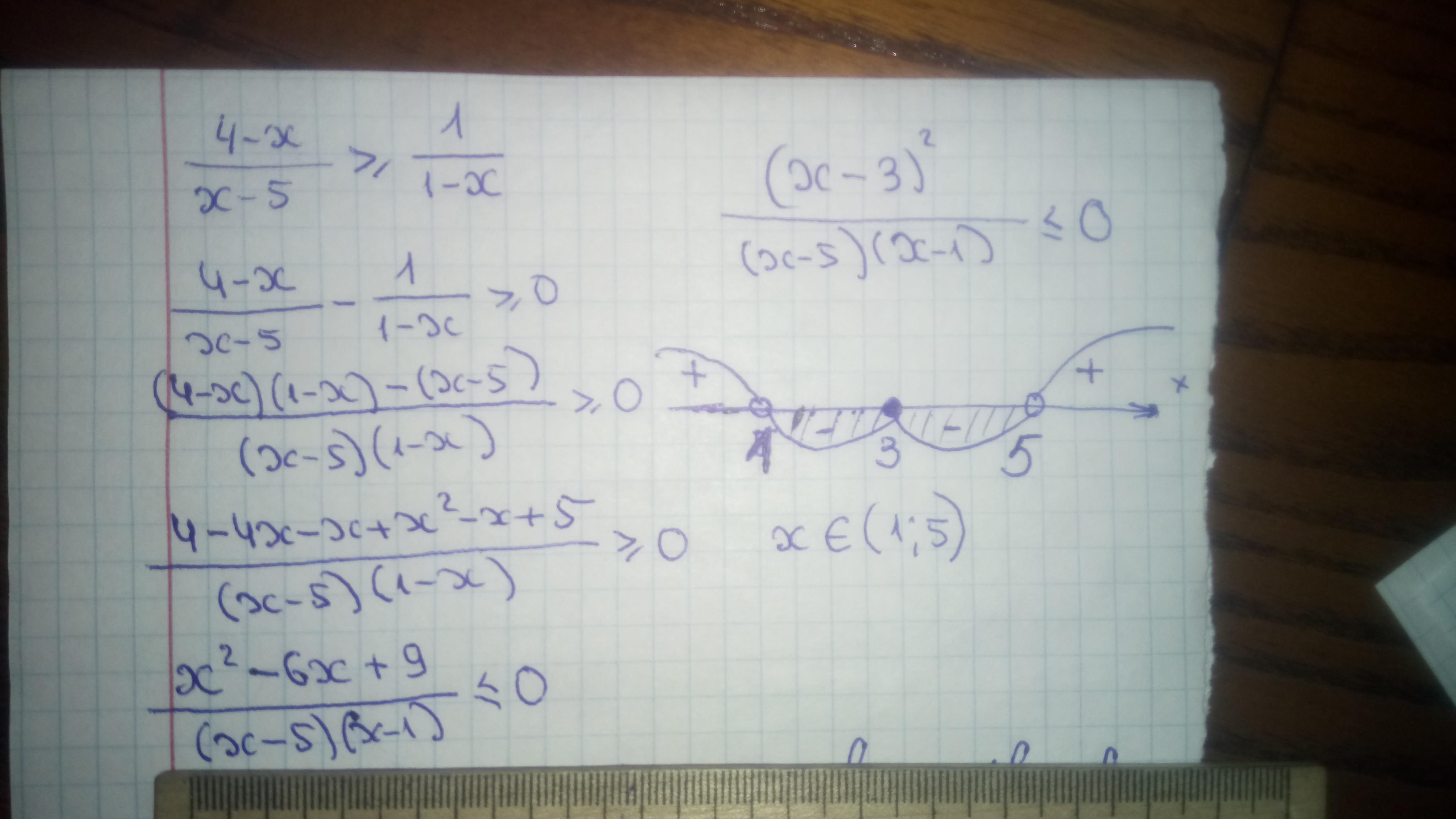 у меня получилось от минус бесконечности до 1 и от 3 до 5