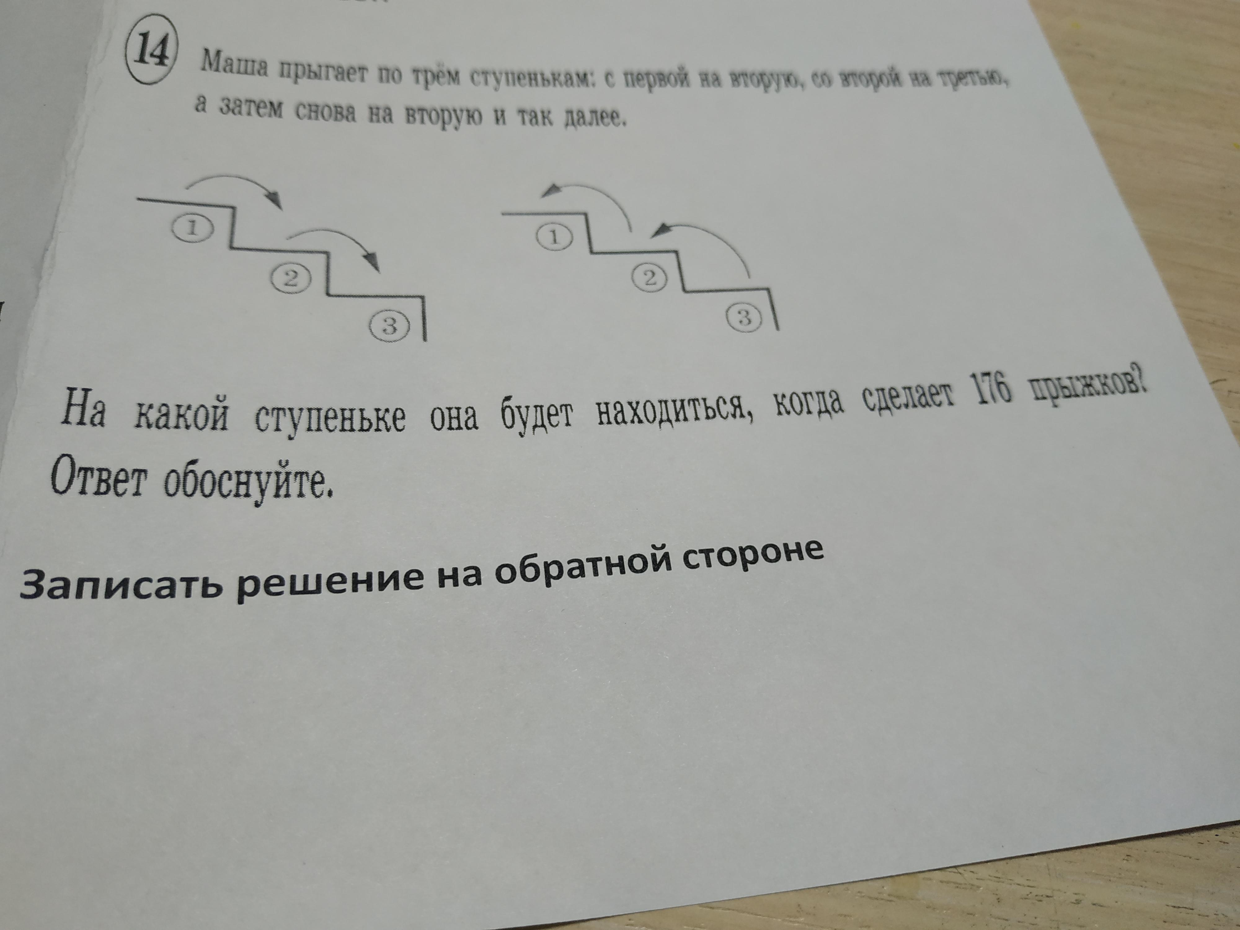 176:4=44 без остатка, значит она будет на первой ступеньке после 176 прыжков