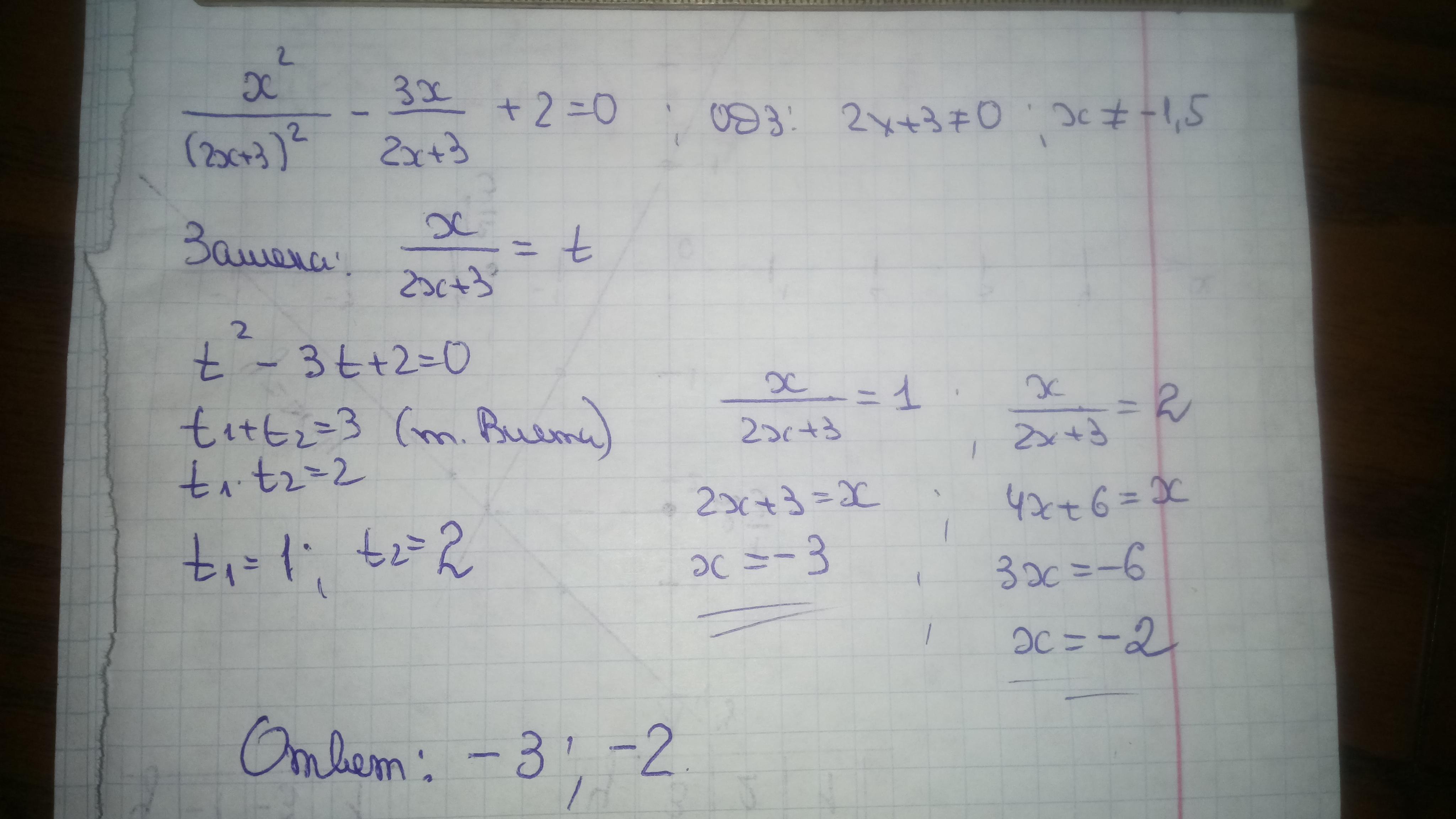 x²/(2x+3)²-3x/(2x+3)+2=0 ОДЗ: 2x+3≠0 2x≠-3 |÷2 x≠-1,5
