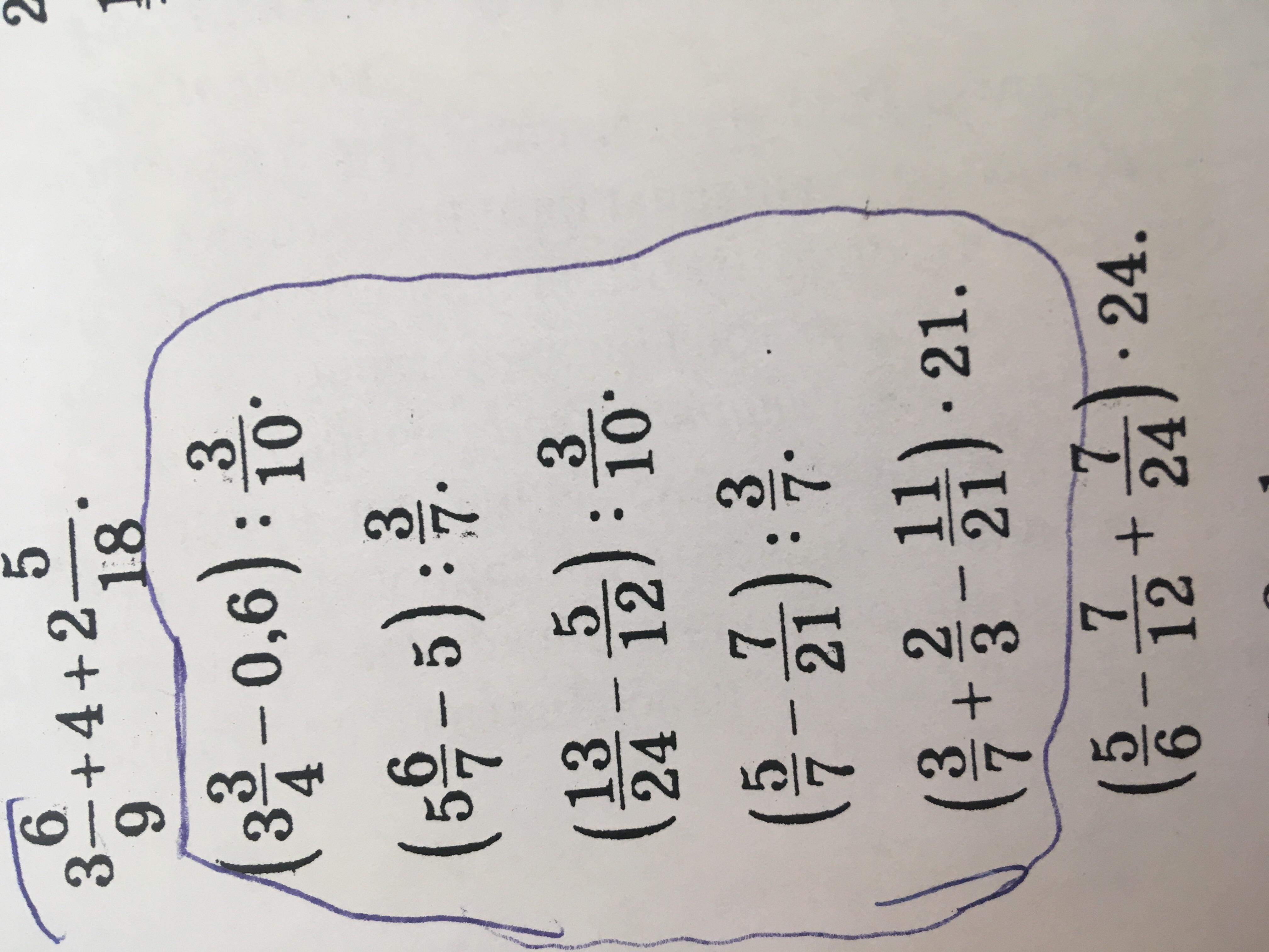 ( 13/24 - 5/12 ) ÷ 3/10 = 1/8 ÷ 3/10 = 5/12 ;