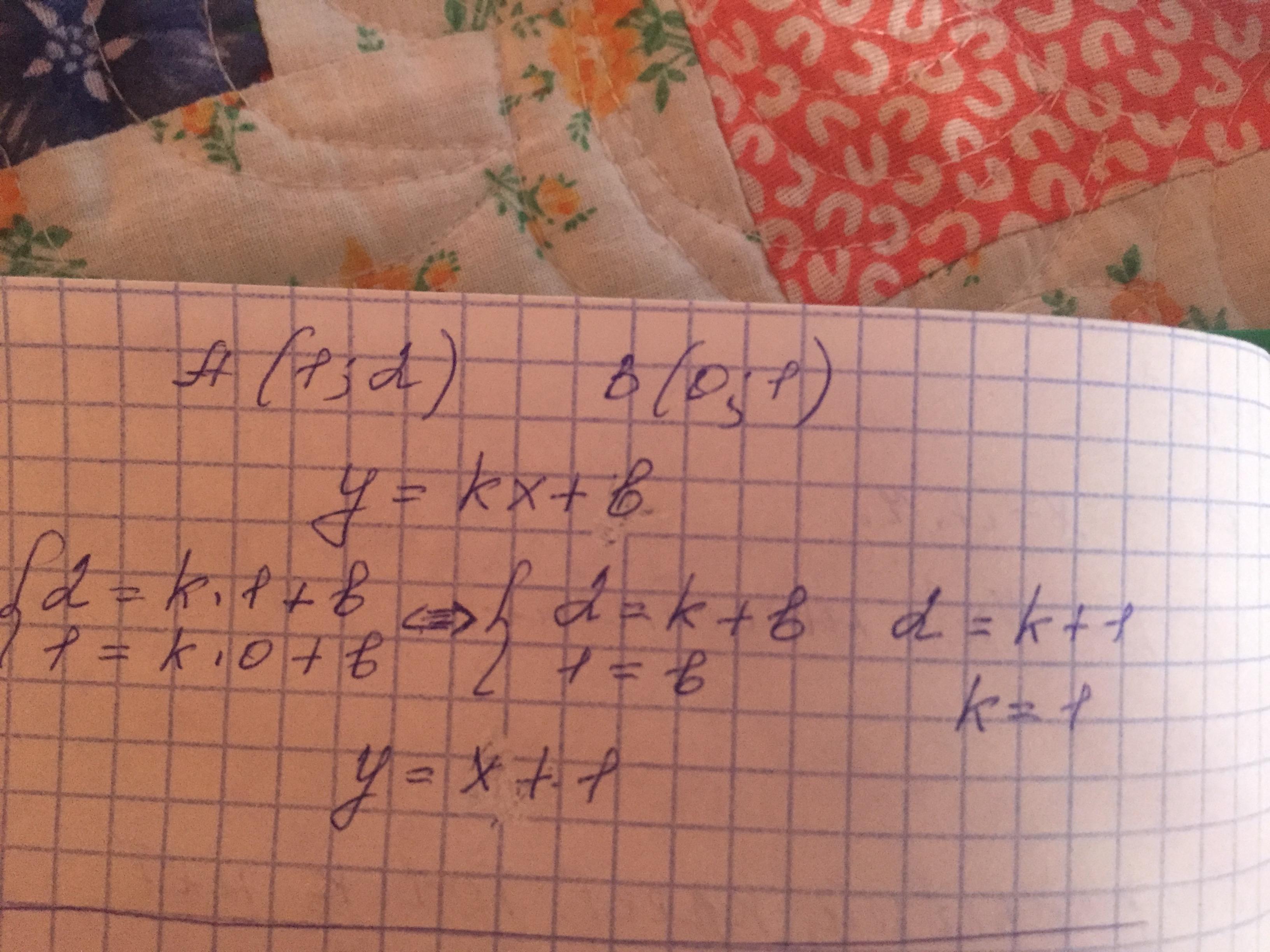 Складить формулу линейной функций график якой проходить через точку А(1,2) и В(0,1)