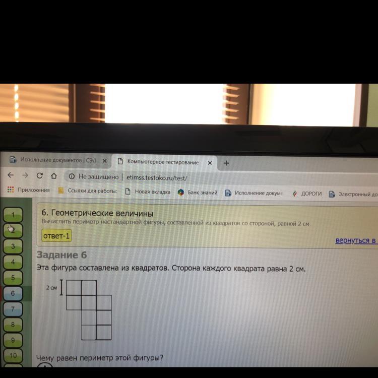 Эта фигура составлена из квадратов. Сторона каждого квадрата равна 2 см. Чему равен периметр этой фигуры?