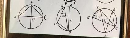 во всех трёх задачах нужно найти угол ABC(тема: центральный и вписанные углы). Не понимаю тему совсем, заранее спасибо. нужно с расписанным решением.