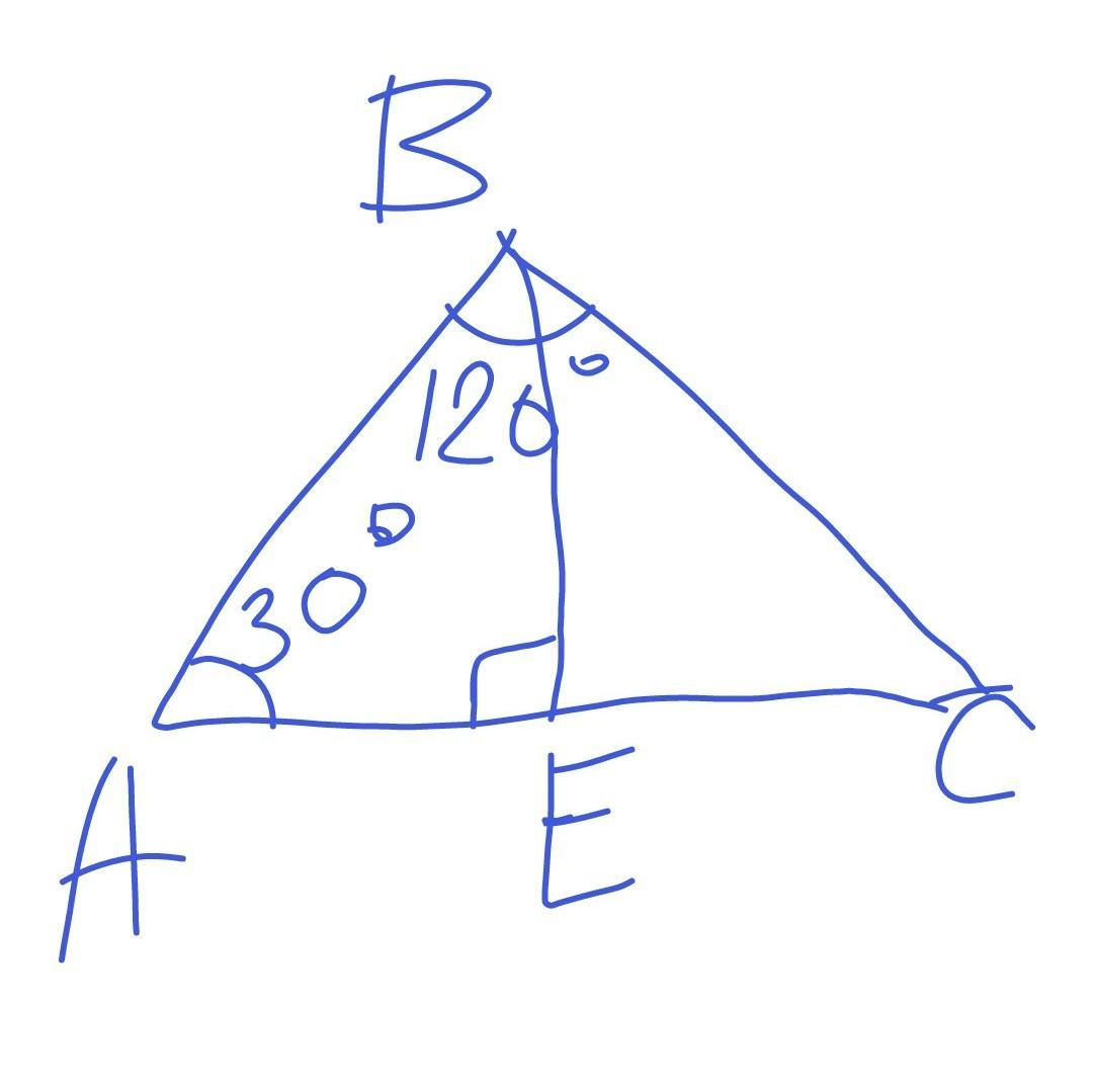 Дан равнобедренный треугольник. Угол вершины = 120°.