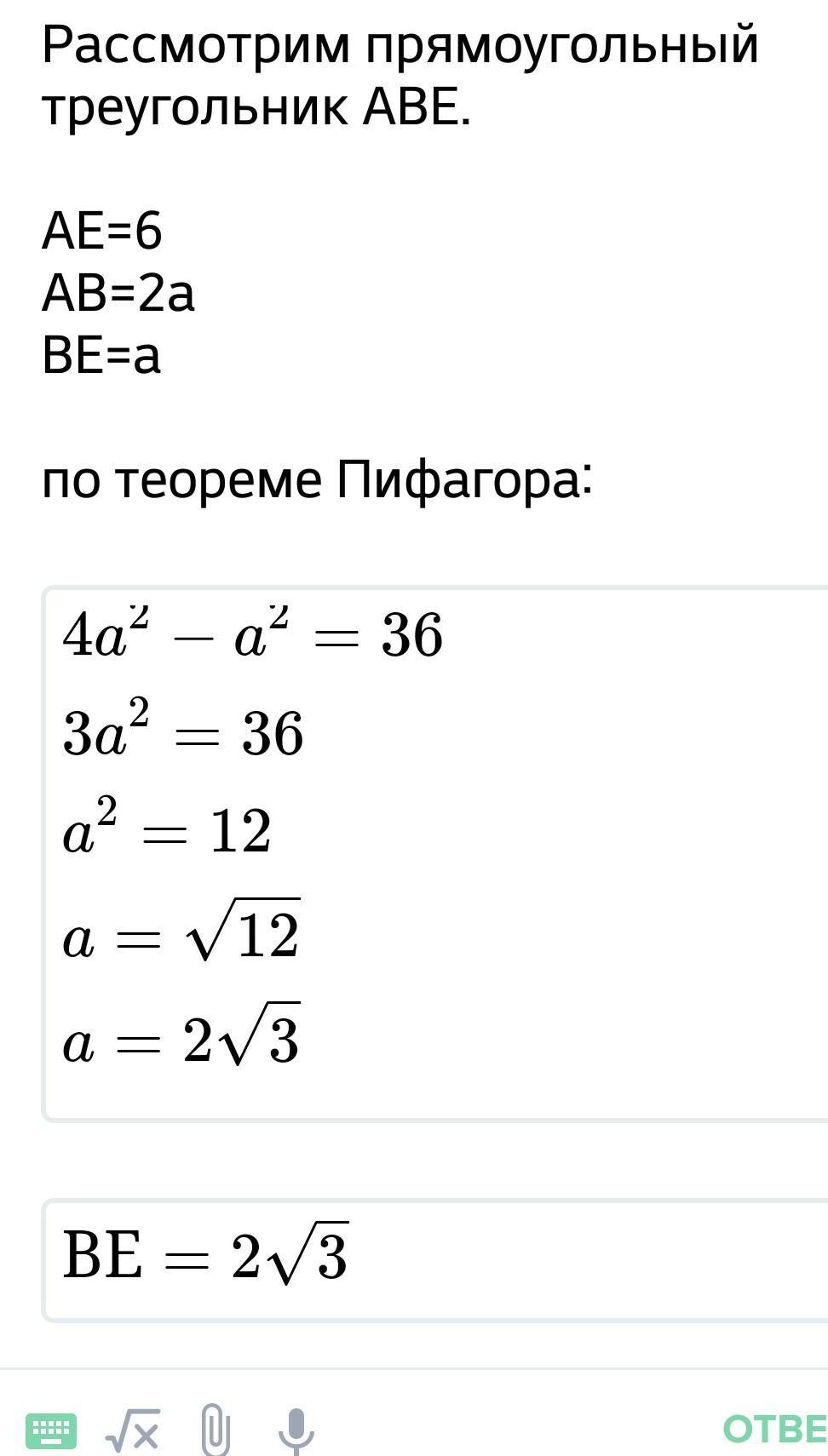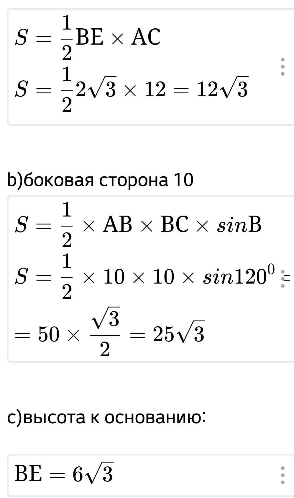 c)высота к основанию 6 корень из 3