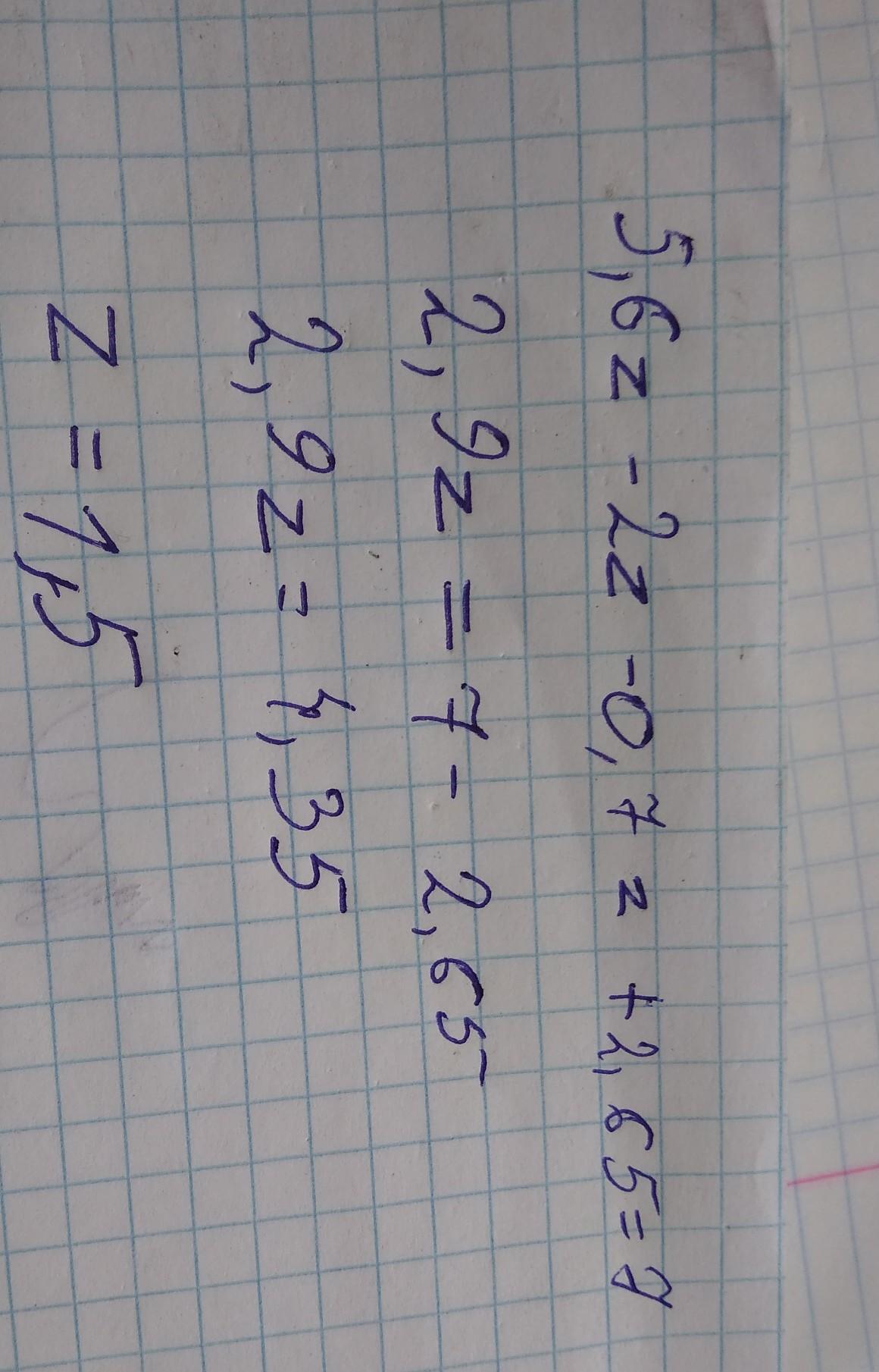 ответ на фото, решите уравнение г) 5,6z-2z-0,7z+2,65=7