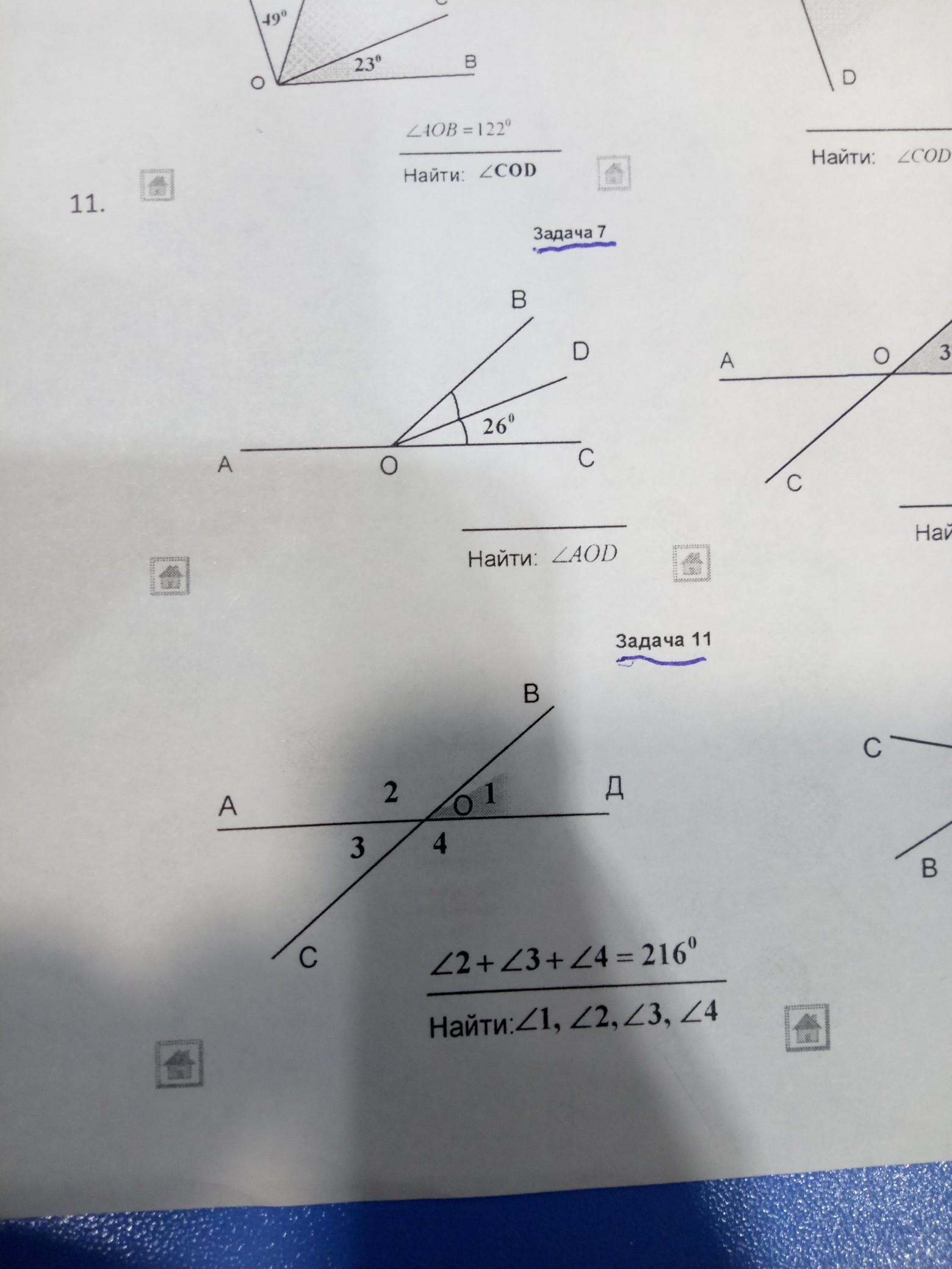 11. ошибка в задаче. вся окружность 360°, 360-216=144° - должен быть 2 угол или 4. т.к. углы 1 и 3 меньше 90° и не могут быть 114°