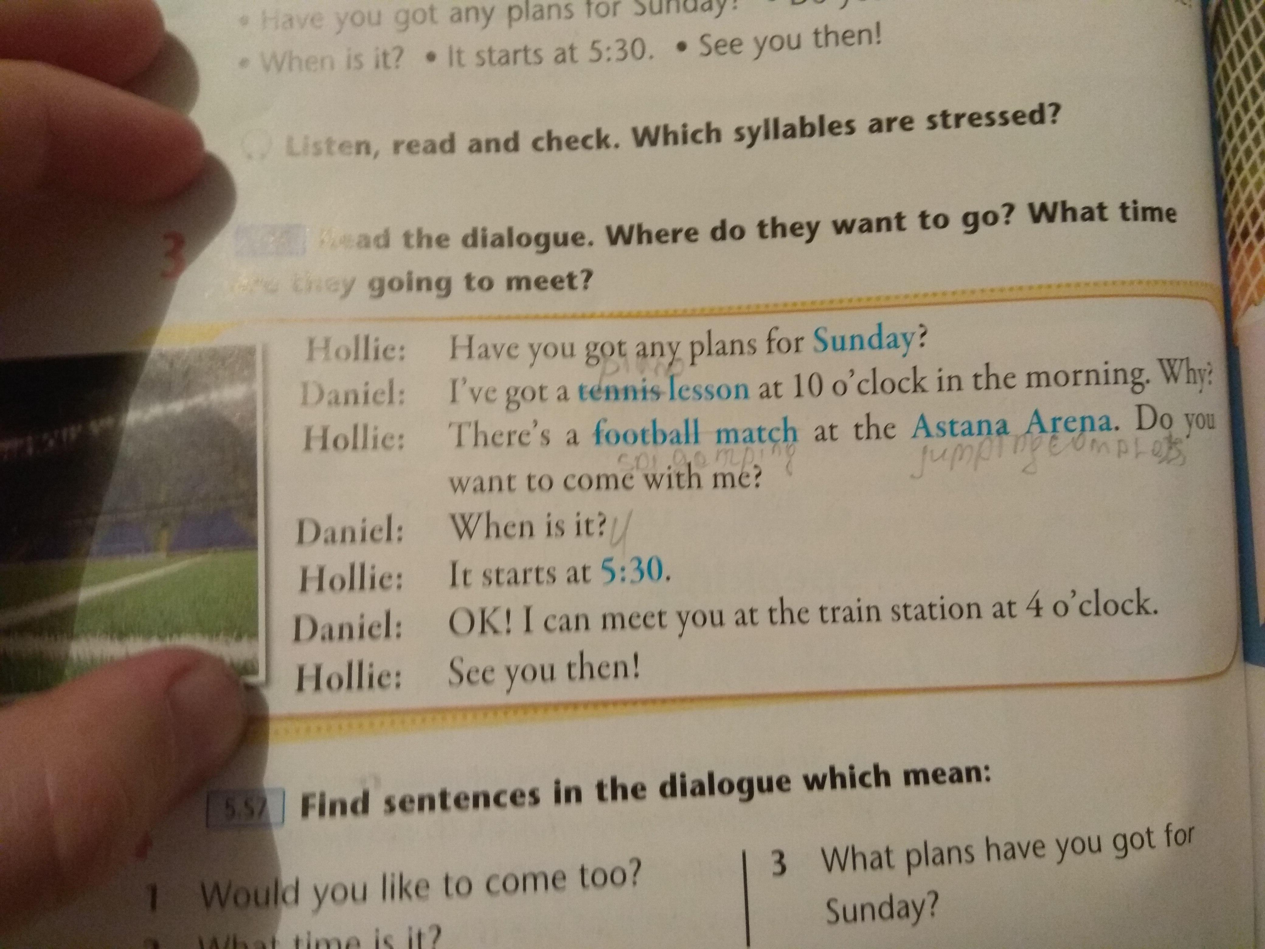 Read the dialogue. Where Do they want to go? What time are they going to meet