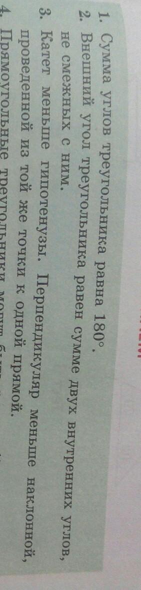 2 Пусть АВС - данный треугольник. По теореме о сумме углов треугольника( которая гласит, что сумма внутренних углов треугольника равна 180°) угол А+ угол В+угол С = 180°. Отсюда следует, что угол А+угол В= 180°- угол С. Правая часть этого равенства, то есть (180°-угол С)- это градусная мера внешнего угла треугольника при вершине С. Теорема доказана.