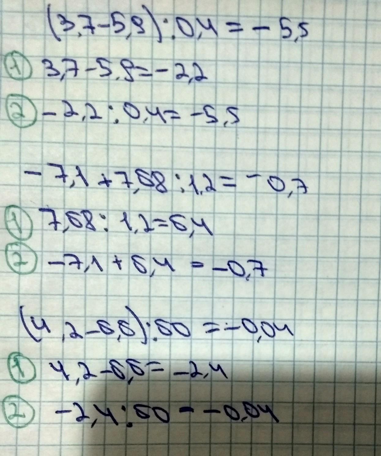 1)3,7-5,9=-2,2 -2,2/0,4=-5,5