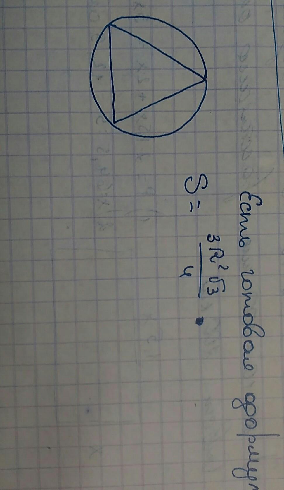 В окружность радиуса R вписан правильный треугольник. Определите его площадь. Если можно , то поподробней.