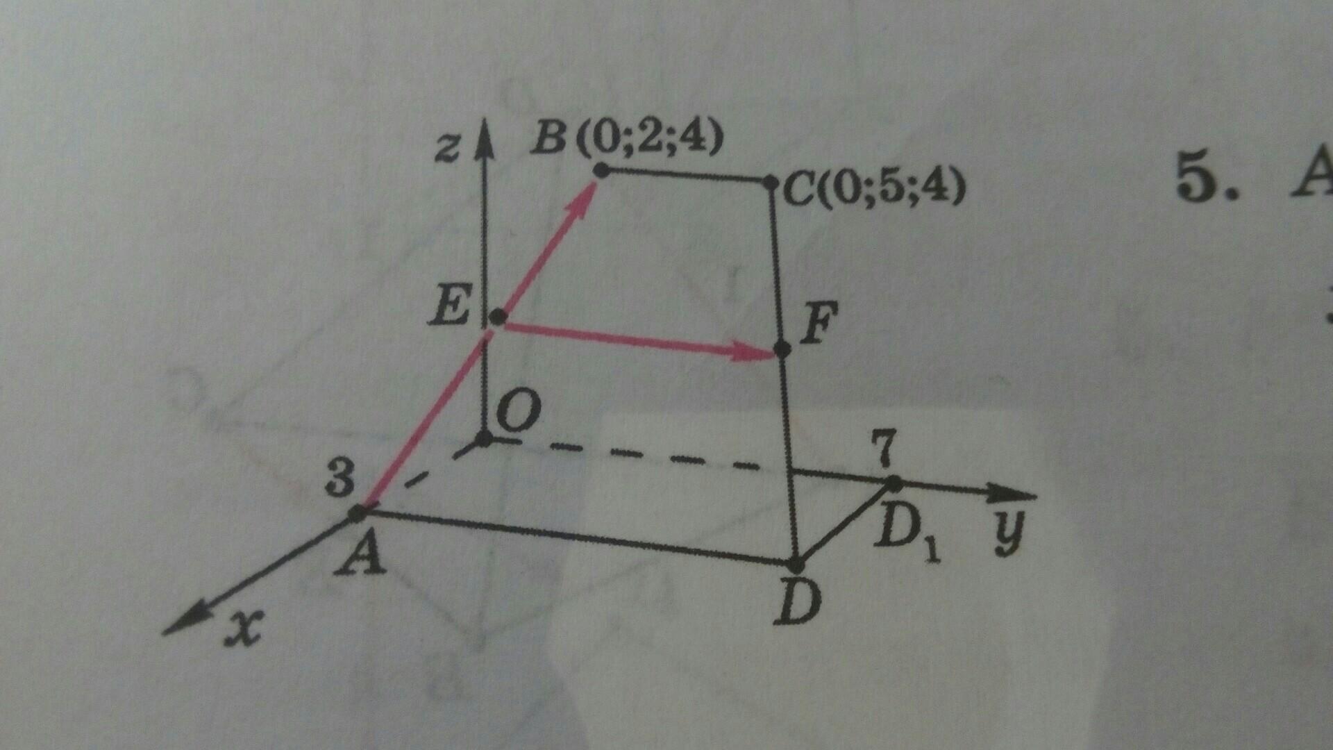 A(3;0;0), B(0;2;4), C(0;5;4) и D(3;7;0). Тогда координаты точек Е и F найдем, как координаты середин отрезков АВ и CD.