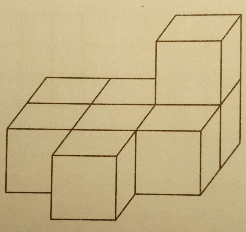 Фигура, изображённая на рисунке, сложена из кубиков, рёбра которых равны 1 см. Сколько граммов краски понадобится, чтобы покрасить поверхность фигуры, если для покраски 1 кв. см поверхности куба необходимо 2 г краски?
