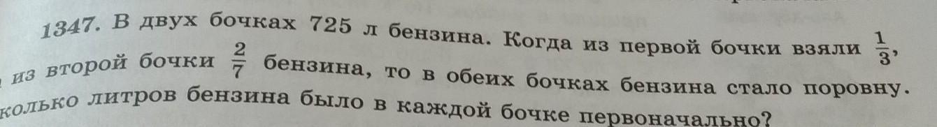 (725 - х) - во второй бочке, после изменения стало (725-х)*5/7