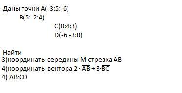 4) 2*(8;-7;10)+3*(-5;6;-1)=(1;4;17)