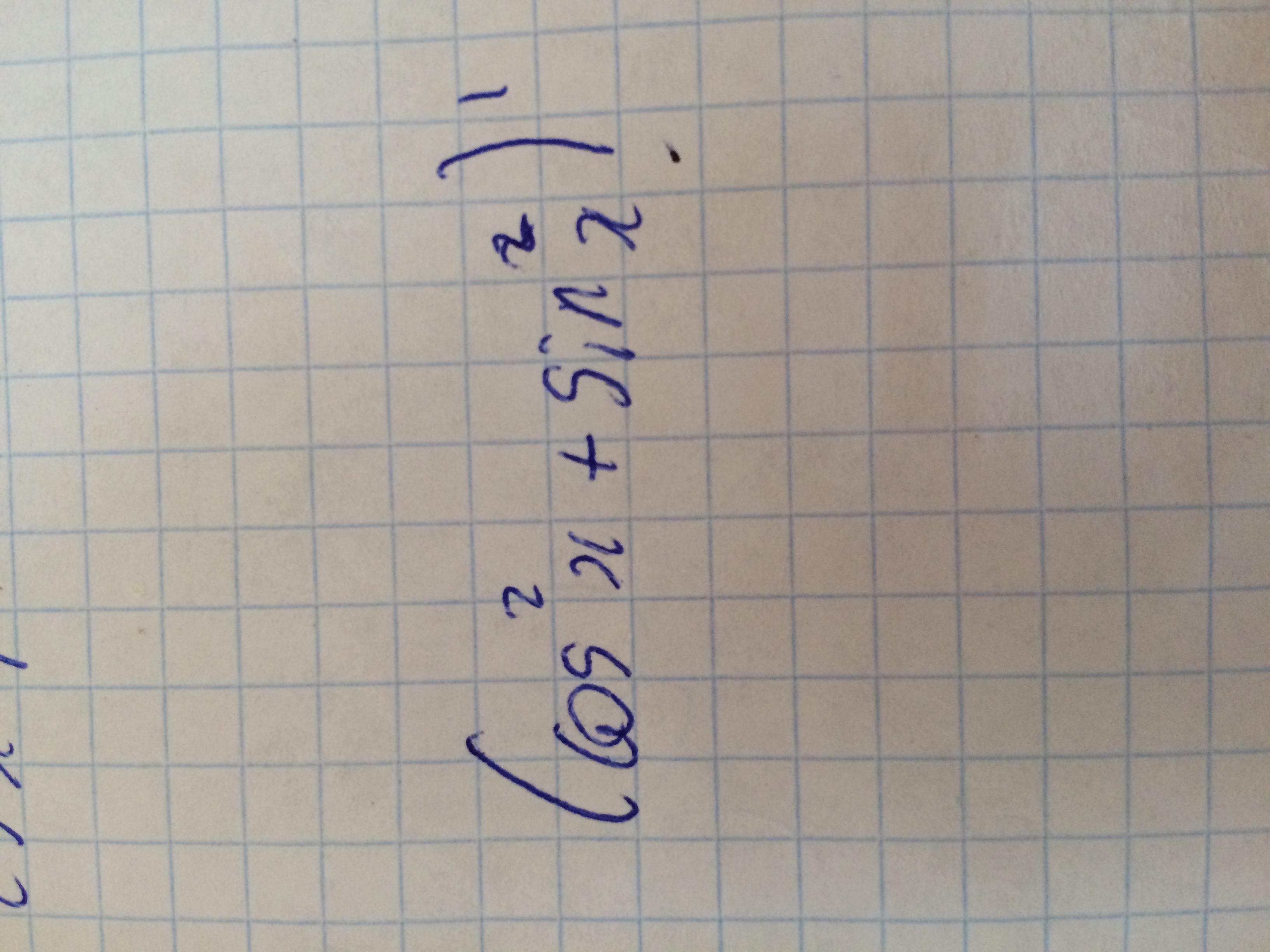 По основному тригонометрическому тождеству выражение в скобках равняется 1, а производна от константы это 0. Ну или: