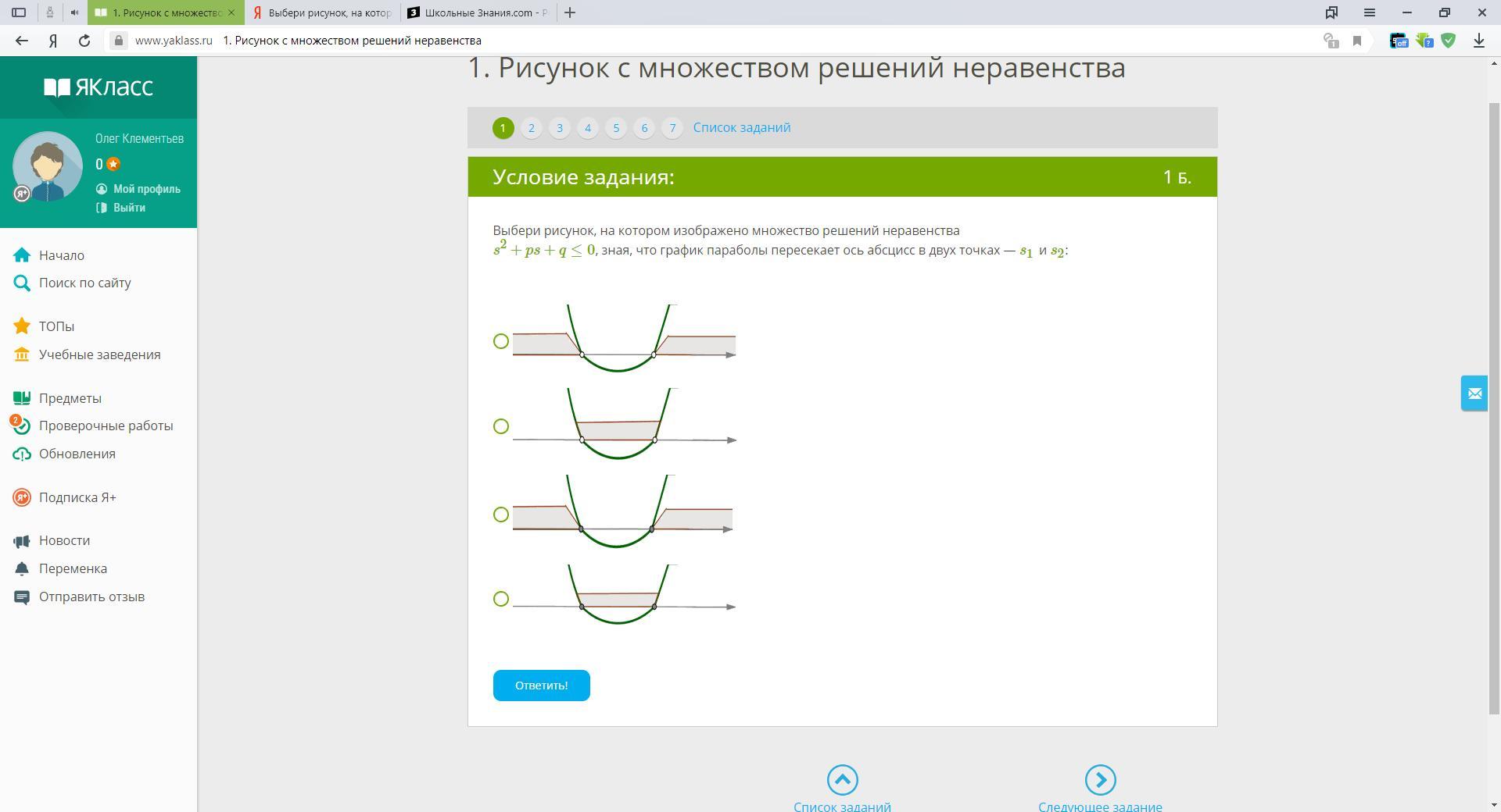 s2+ps+q≤0 , зная, что график параболы пересекает ось абсцисс в двух точках — s1 и s2