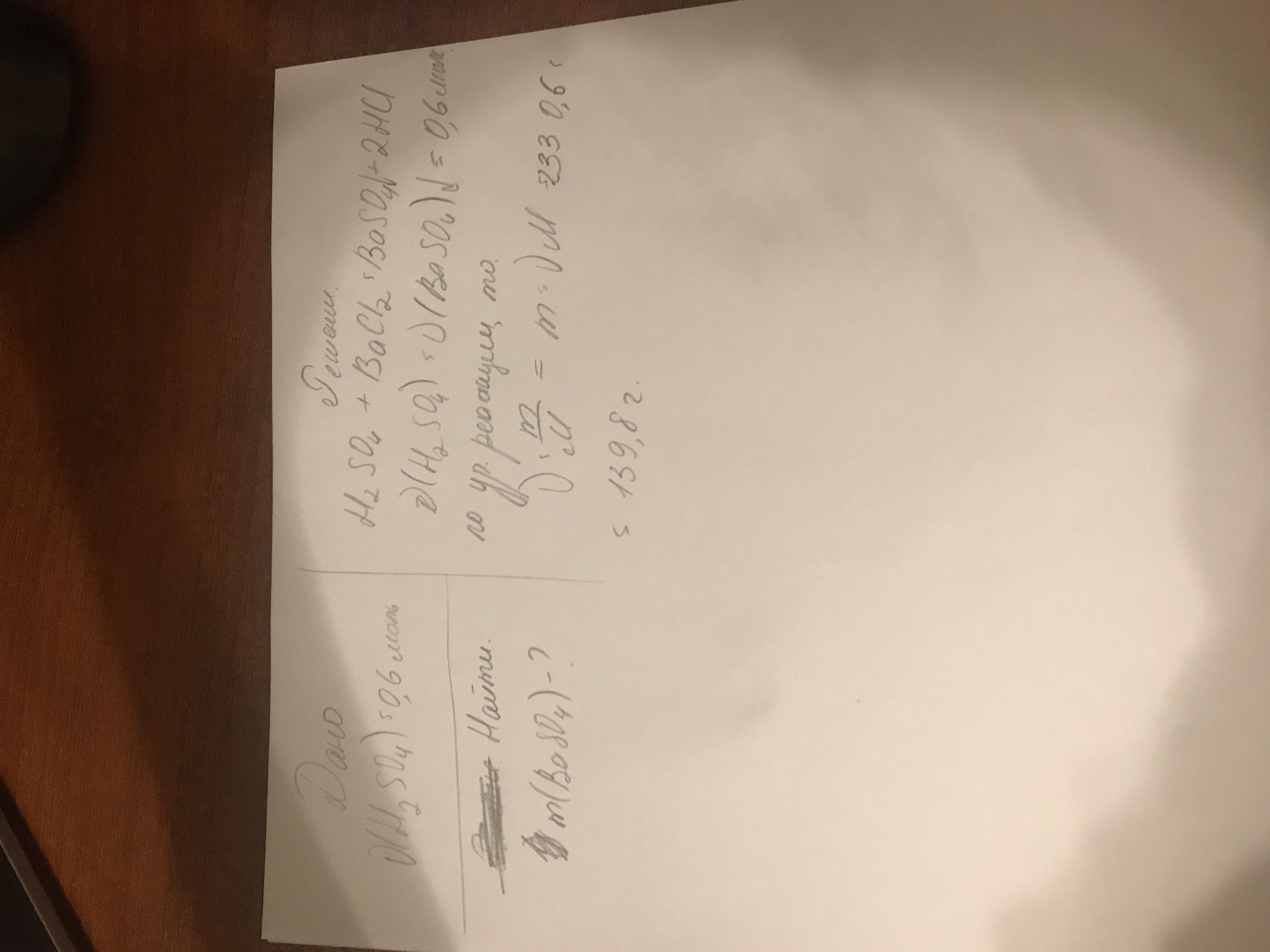 Сколько грамм сульфата бария получится если в реакцию вступило 0,6 моль серной кислоты?