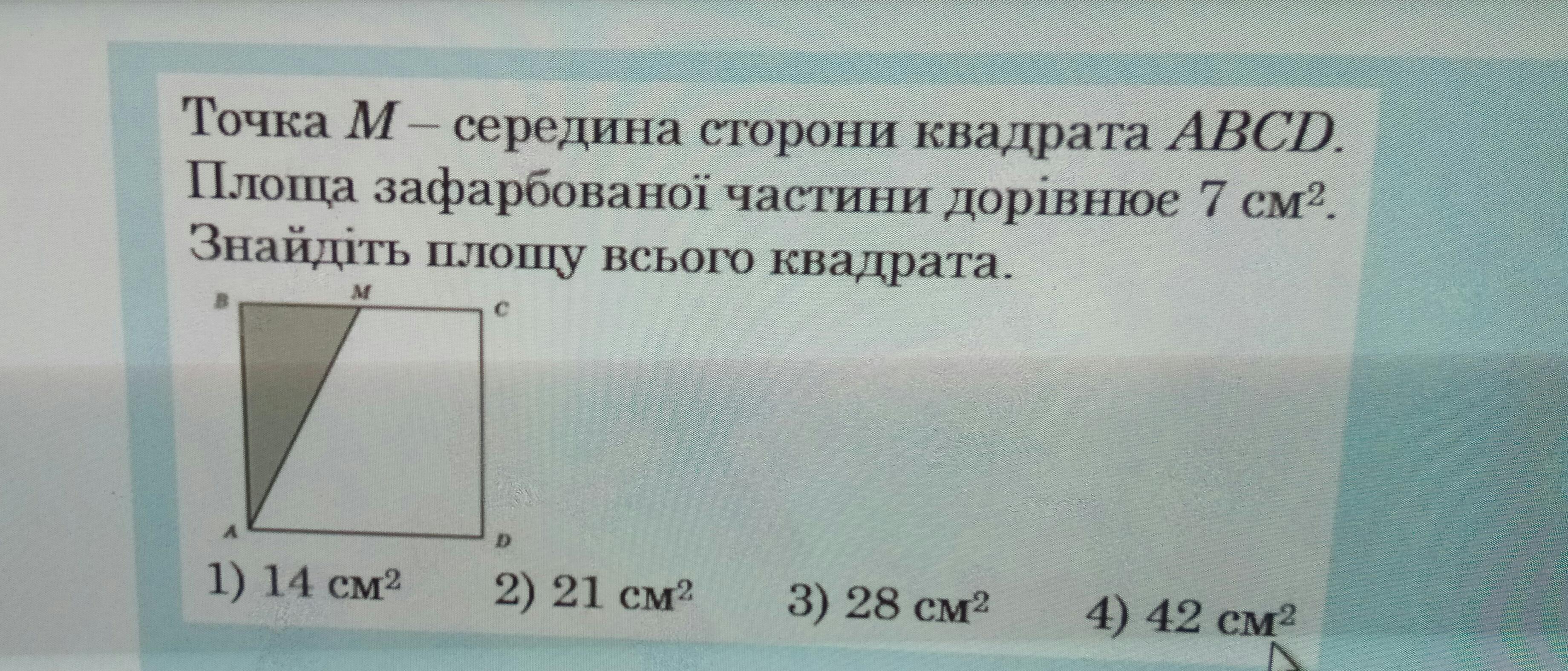 я думаю, что 7*4= 28 см²