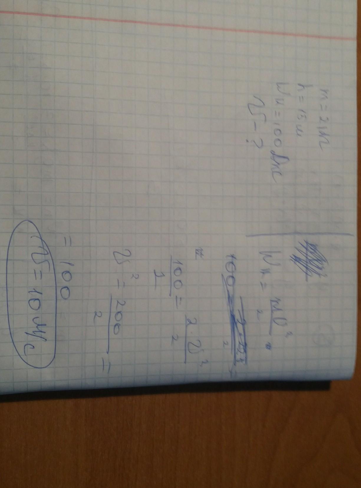 тіло масою 2 кг кинули під кутом до горизонту. На максималній висоті 15 м тіло має кінетичну енергію 100 дж. Яка була початкова швидкіст ? вважвйте що g=10m/c^2