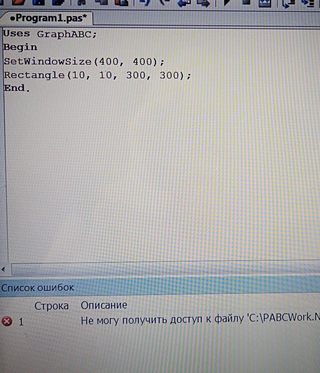 Ошибка описана в нижней части экрана: "Не могу получить доступ к файлу 'C:PABCWork.NETOutputProgram2.exe' "