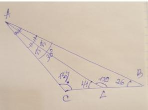 Теперь из ΔABC находим ∠ACB=180°-26°-30°=124°