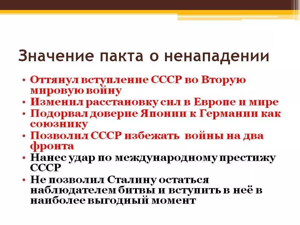 ПАКТ МОЛОТОВА-РИББЕНТРОПА: ЗНАЧЕНИЕ (Пакт о ненападении)