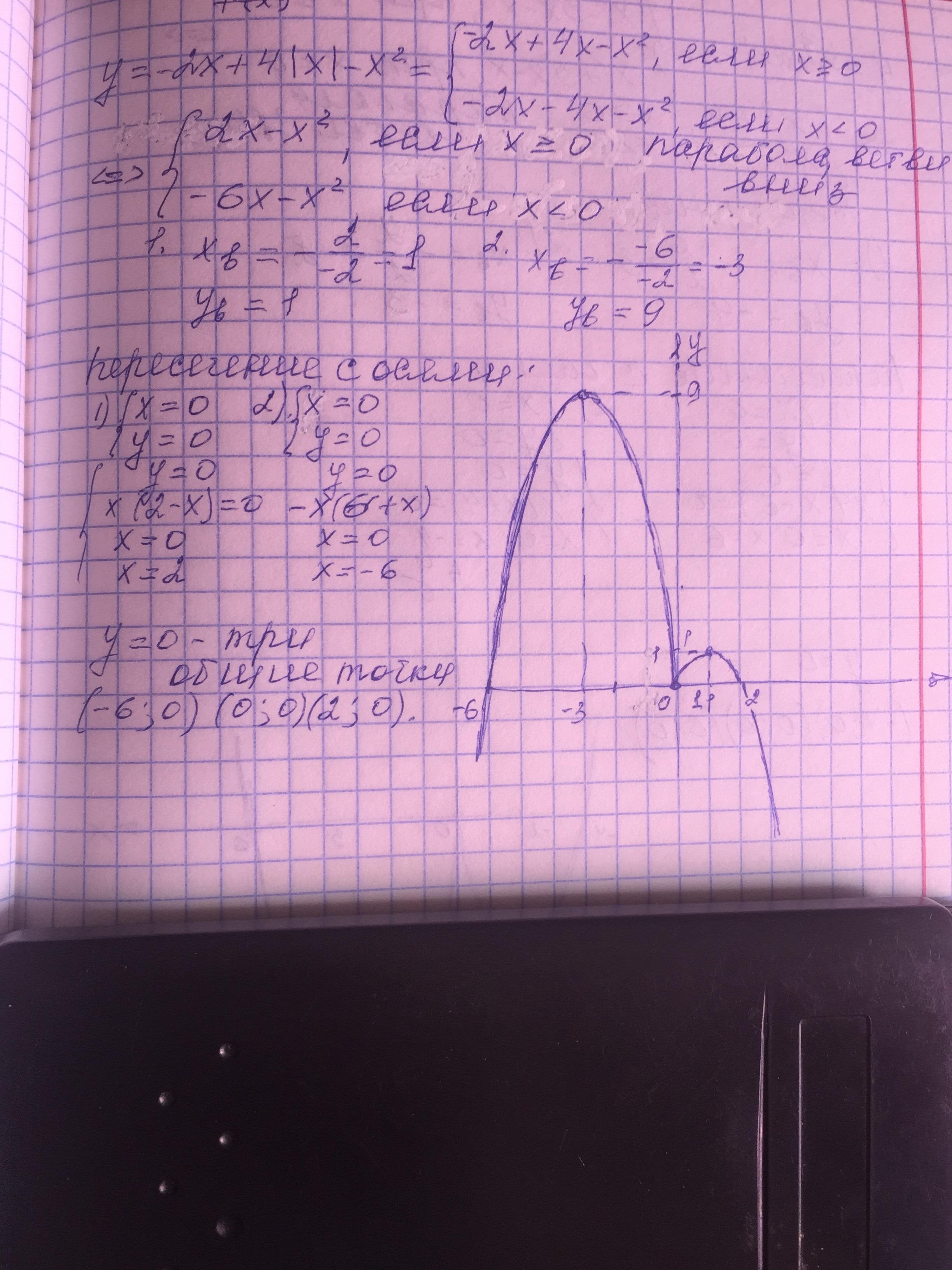 Постройте график функции y=-2x+4|x|-x^2 и определите, при каких значениях С прямая Y=С имеет с графиком ровно три общие точки.