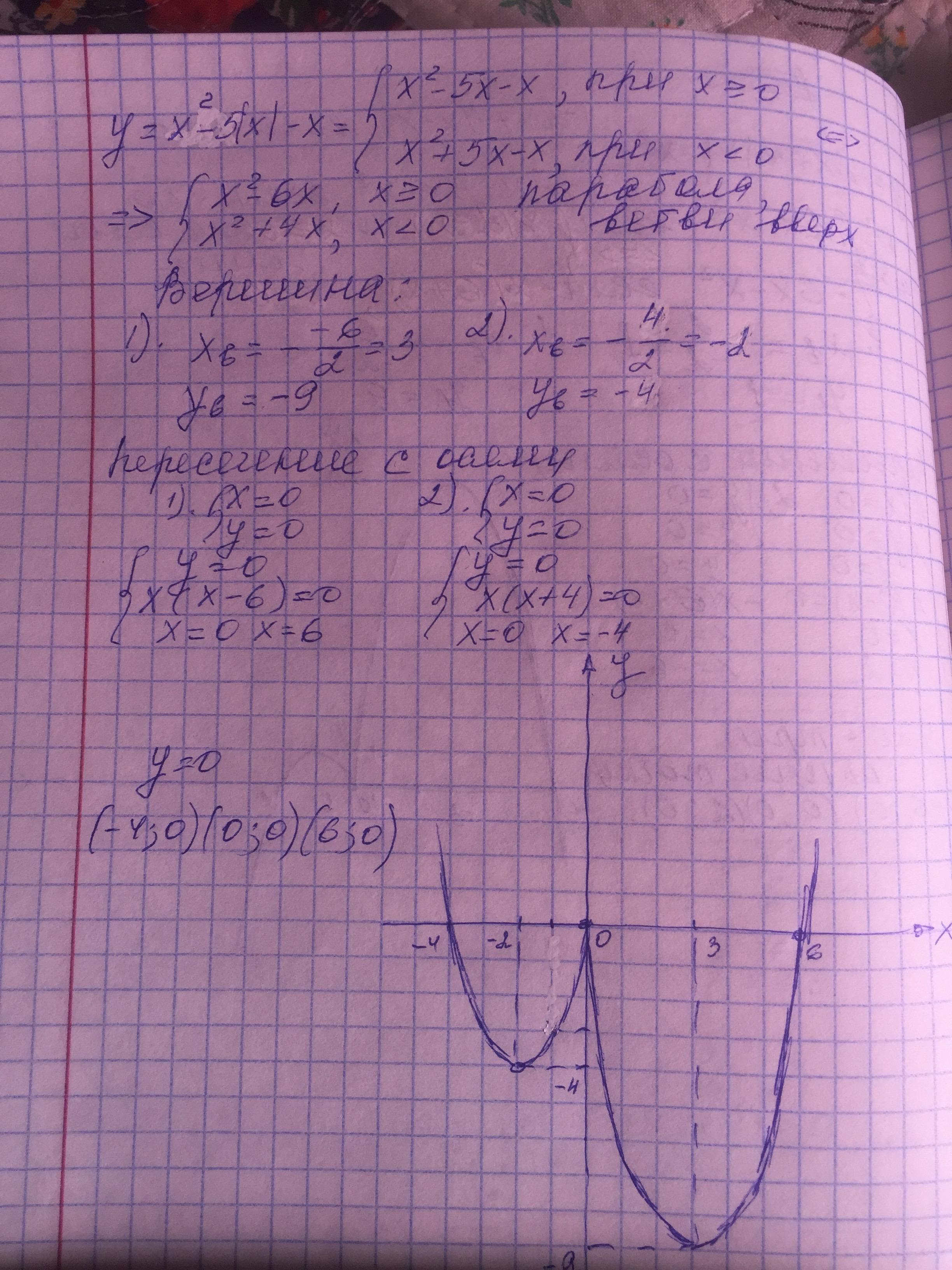 Постройте график функции y=x^2-5|x|-x и определите, при каких значениях С прямая Y=С имеет с графиком ровно три общие точки.
