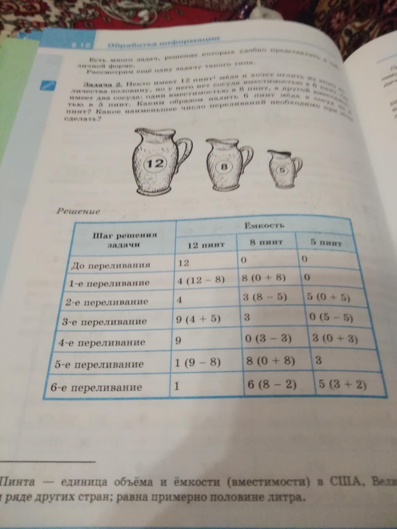 Дальше, все, что следует после "5л" - пишешь в столбик второй. Например, первое переливание 5 (0+5)