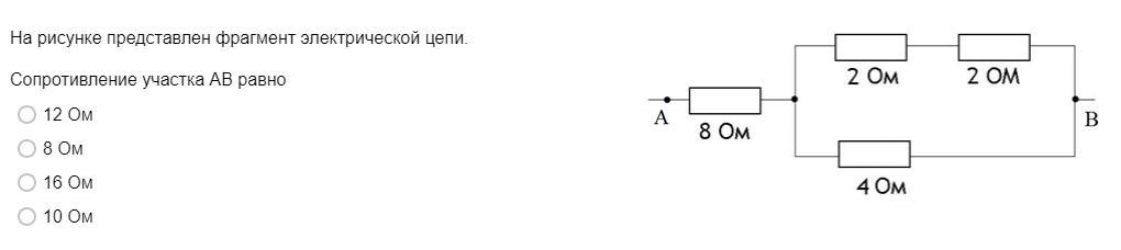 R=8+2=10Ом ( последовательное соединение)