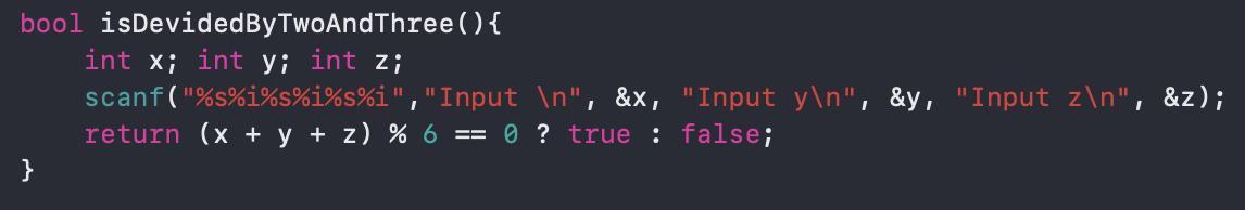 Составьте программу которая запрашивает три числа и проверяет делится ли их сумма на два и три одновременно