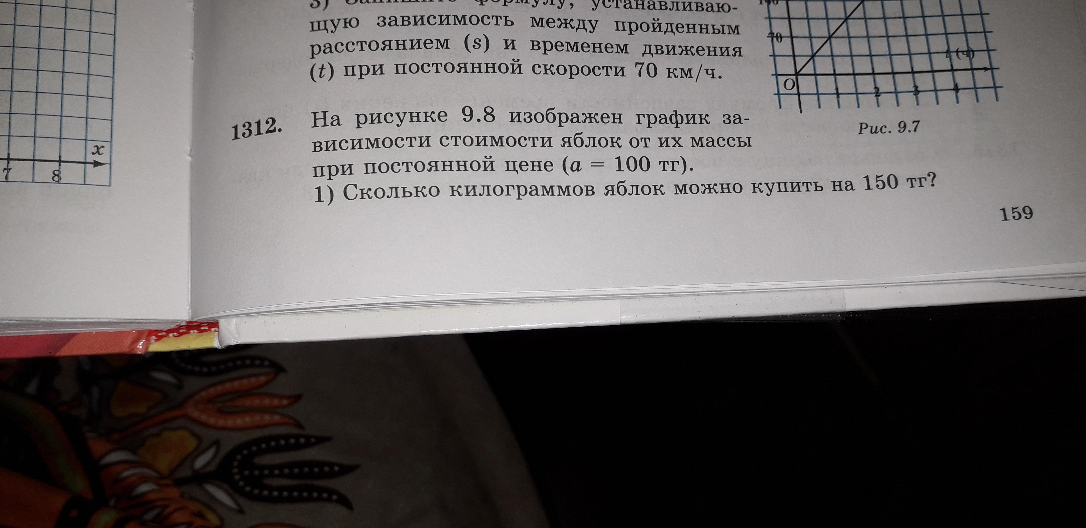1) На 150 тг можно купить 1, 5 кг яблок. Смотрим по вертикале и ищем середину между 200 тг и 100 тг. Потом смотрим координату абсцисс, в той точке.