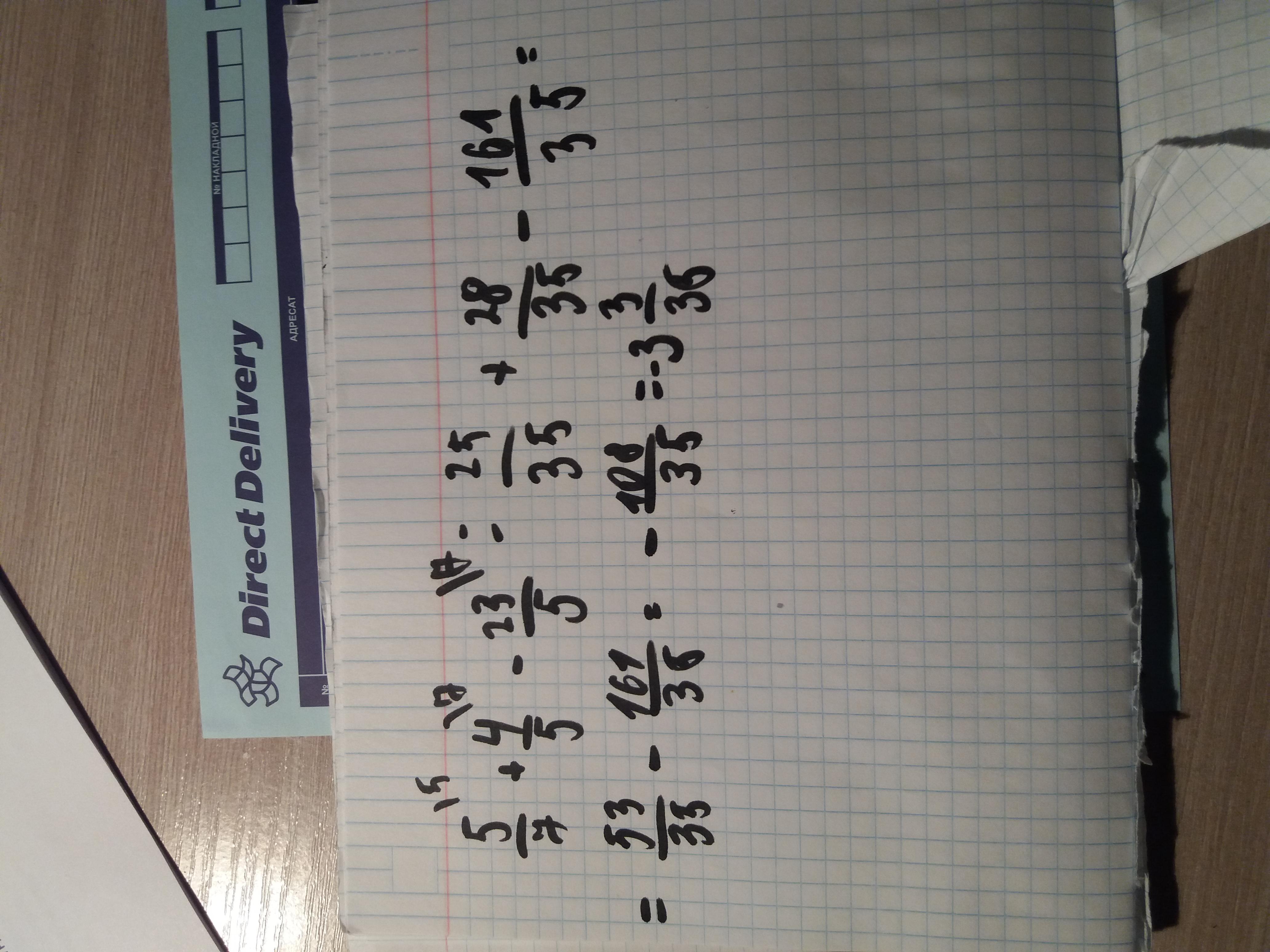 5/7 + 4/5 - 23/5=25/35+28/35-161/35=-108/35=-3 3/35