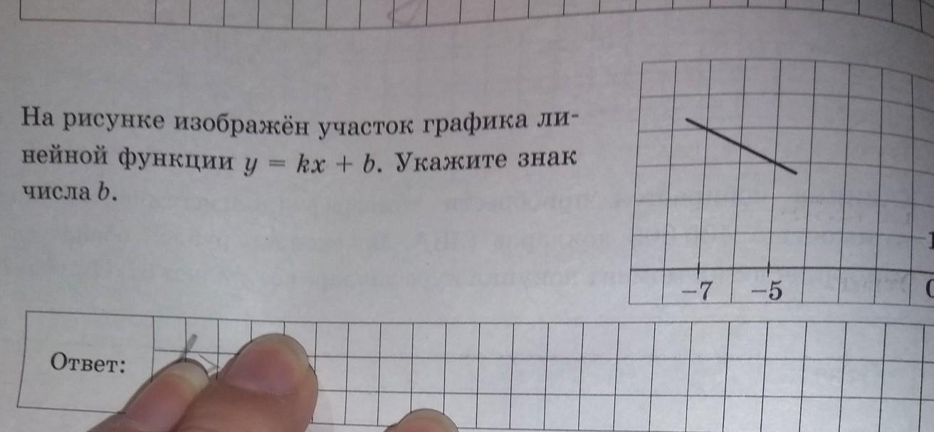 Надо продлить прямую линию хотя бы до оси ОУ (или дальше) и посмотреть, в какой точке пересекает прямая ось ОУ. Если точка лежит на оси ОУ выше оси ОХ, то b>0 (положительно). Если точка пересечения находится на оси ОУ ниже оси ОХ, то b<0 (отрицательно). По рисунку видно, что b>0 .